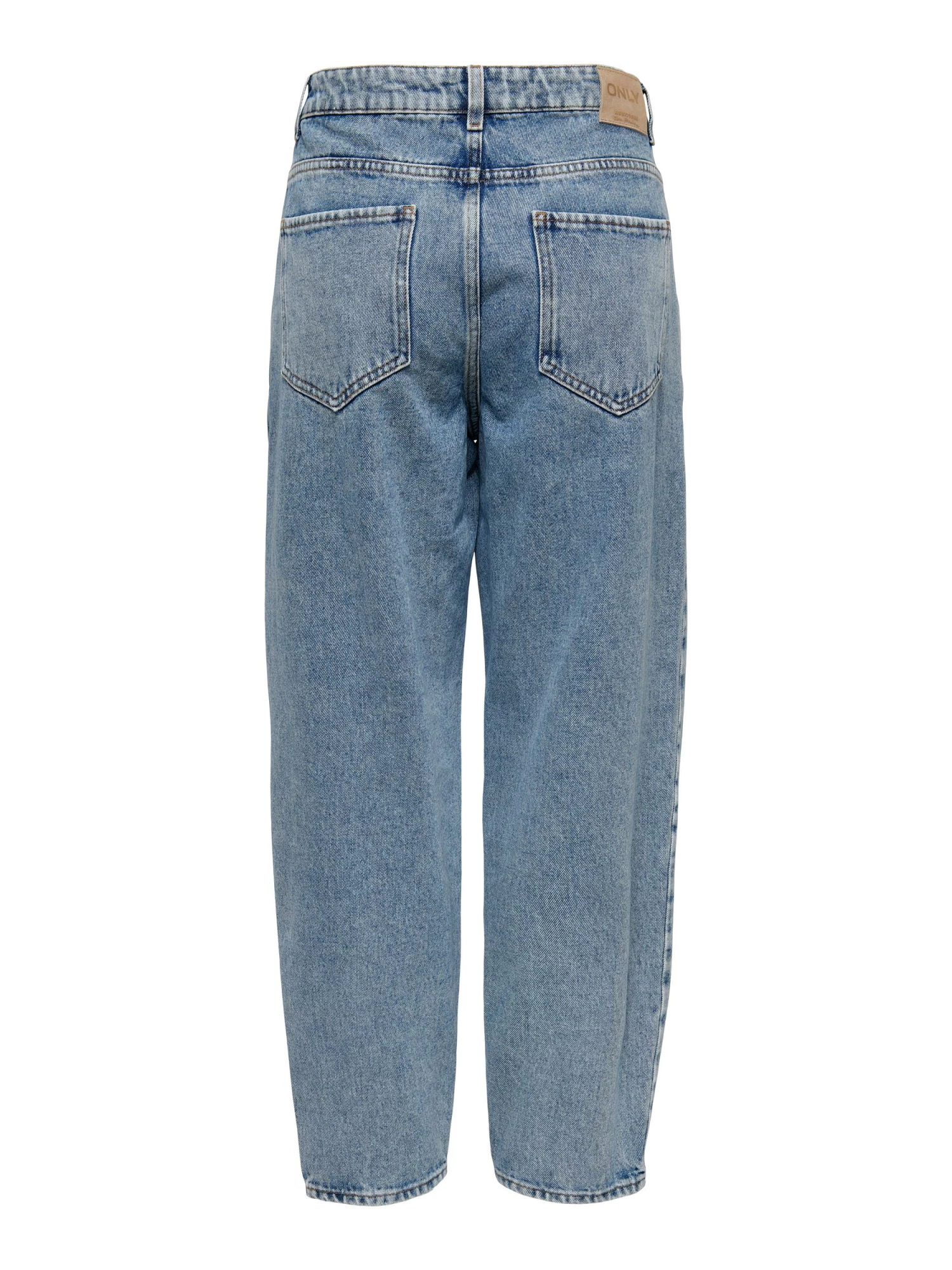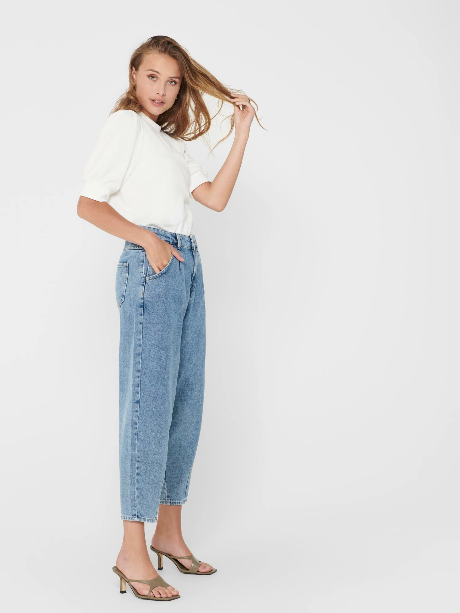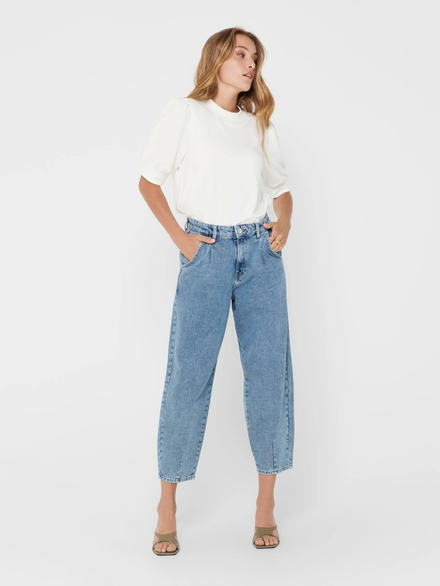 – Denim Jeans in Straight Fit- High Waist- Verschluss vorn- 5-Pocket-Style- Gürtelschlaufen- Balloneffekt- Schrittnaht: 67 cm in Größe S/32- Das Model trägt Größe S/32