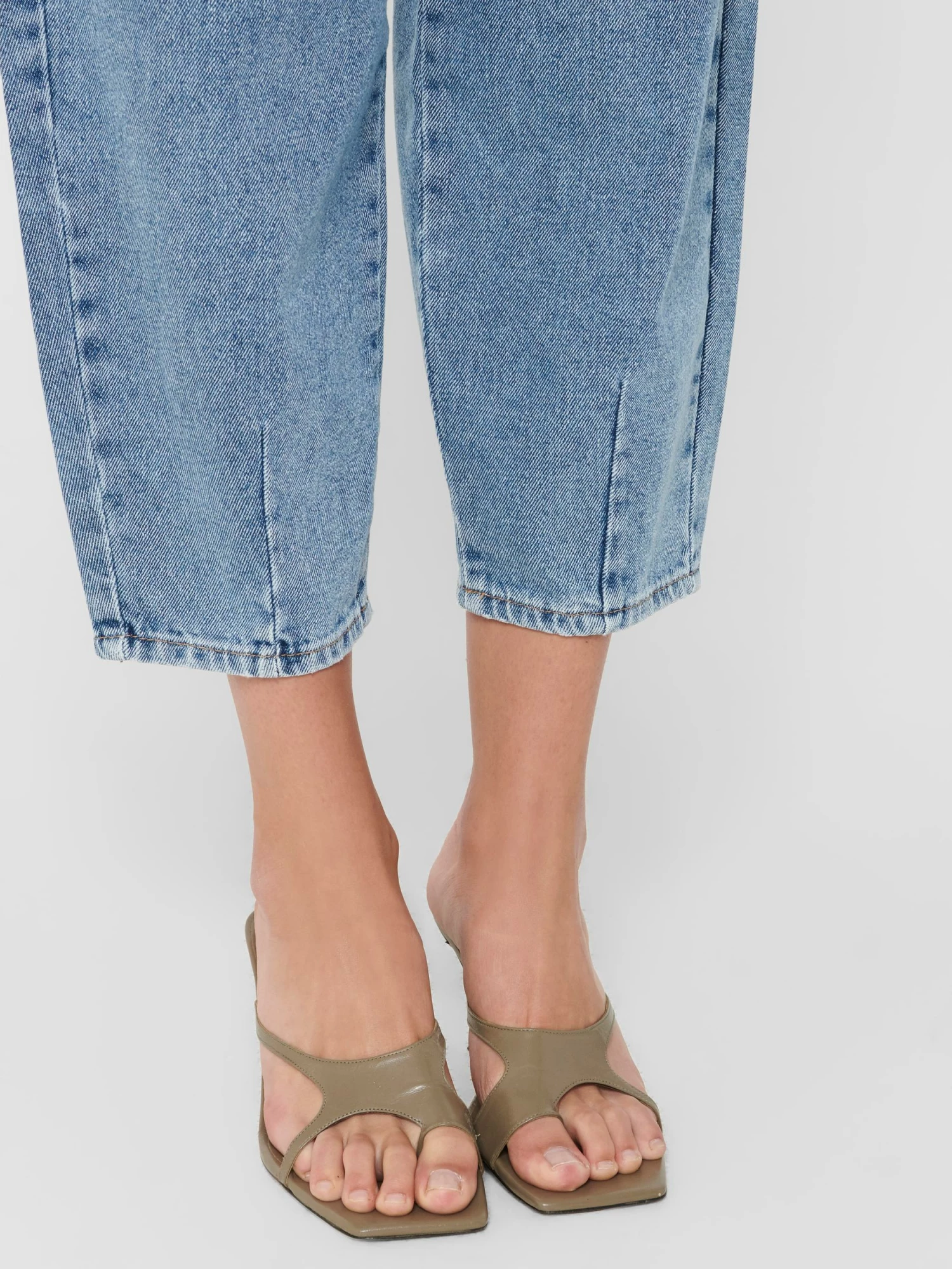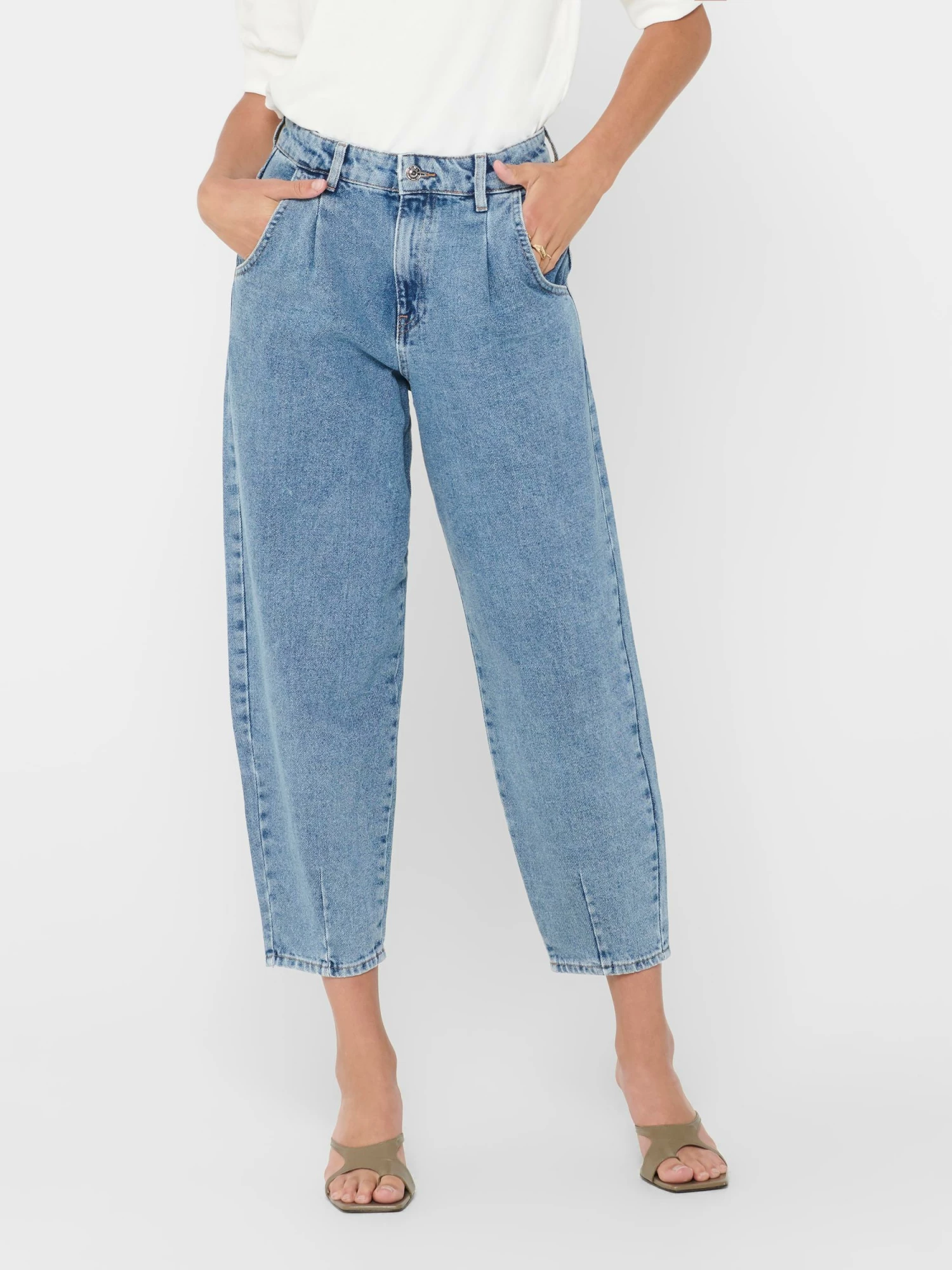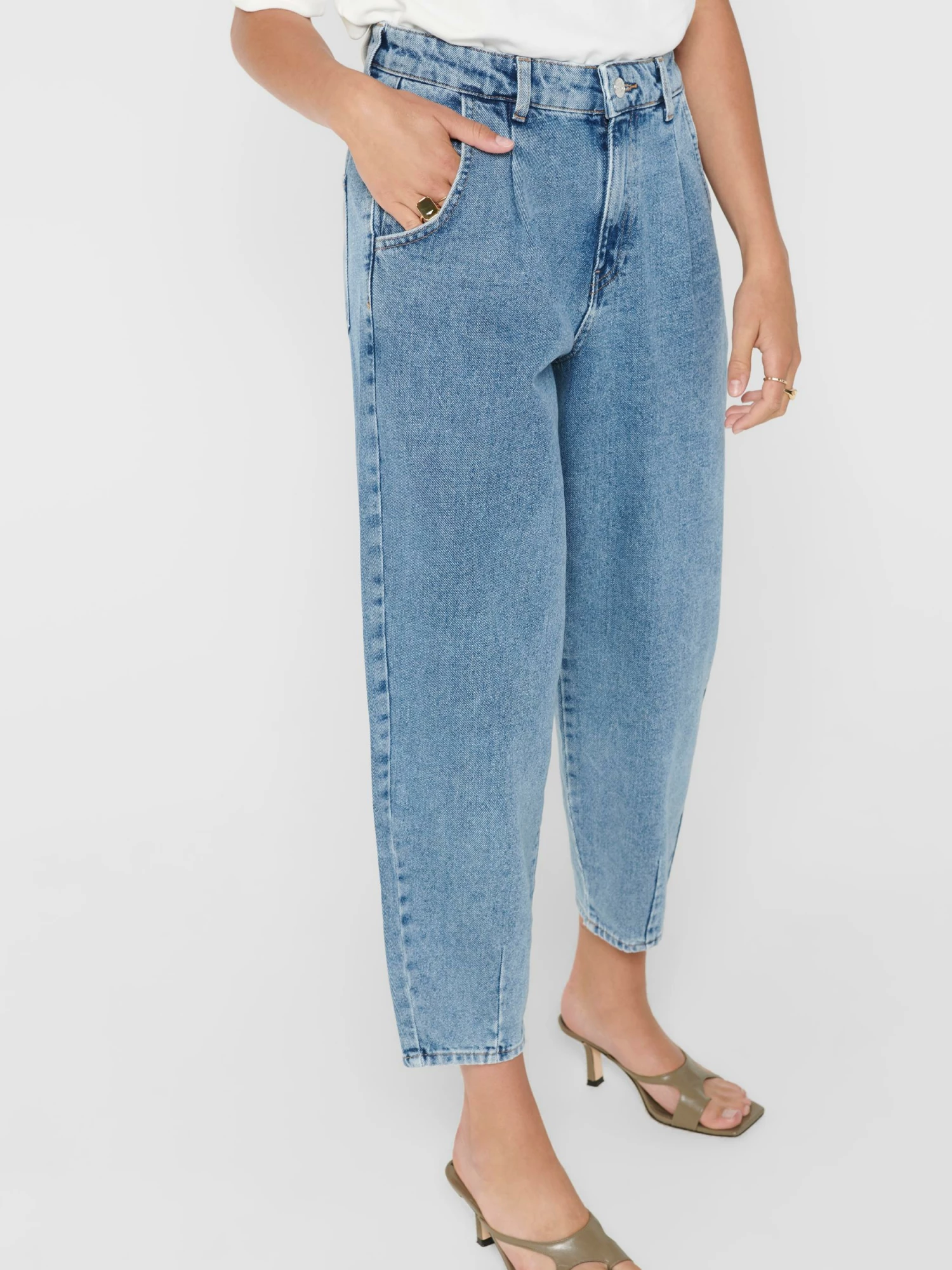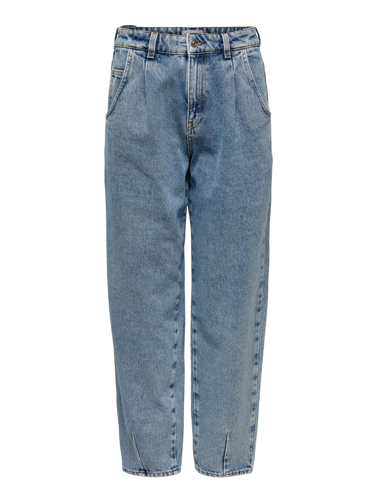 – Denim Jeans in Straight Fit- High Waist- Verschluss vorn- 5-Pocket-Style- Gürtelschlaufen- Balloneffekt- Schrittnaht: 67 cm in Größe S/32- Das Model trägt Größe S/32