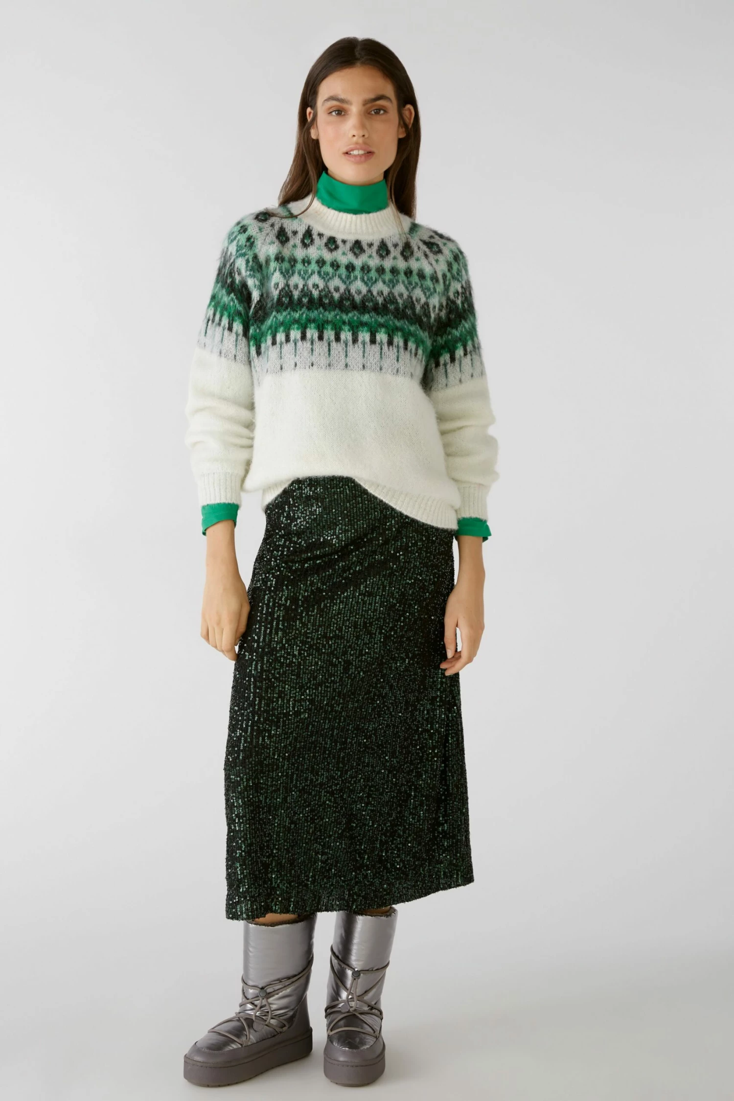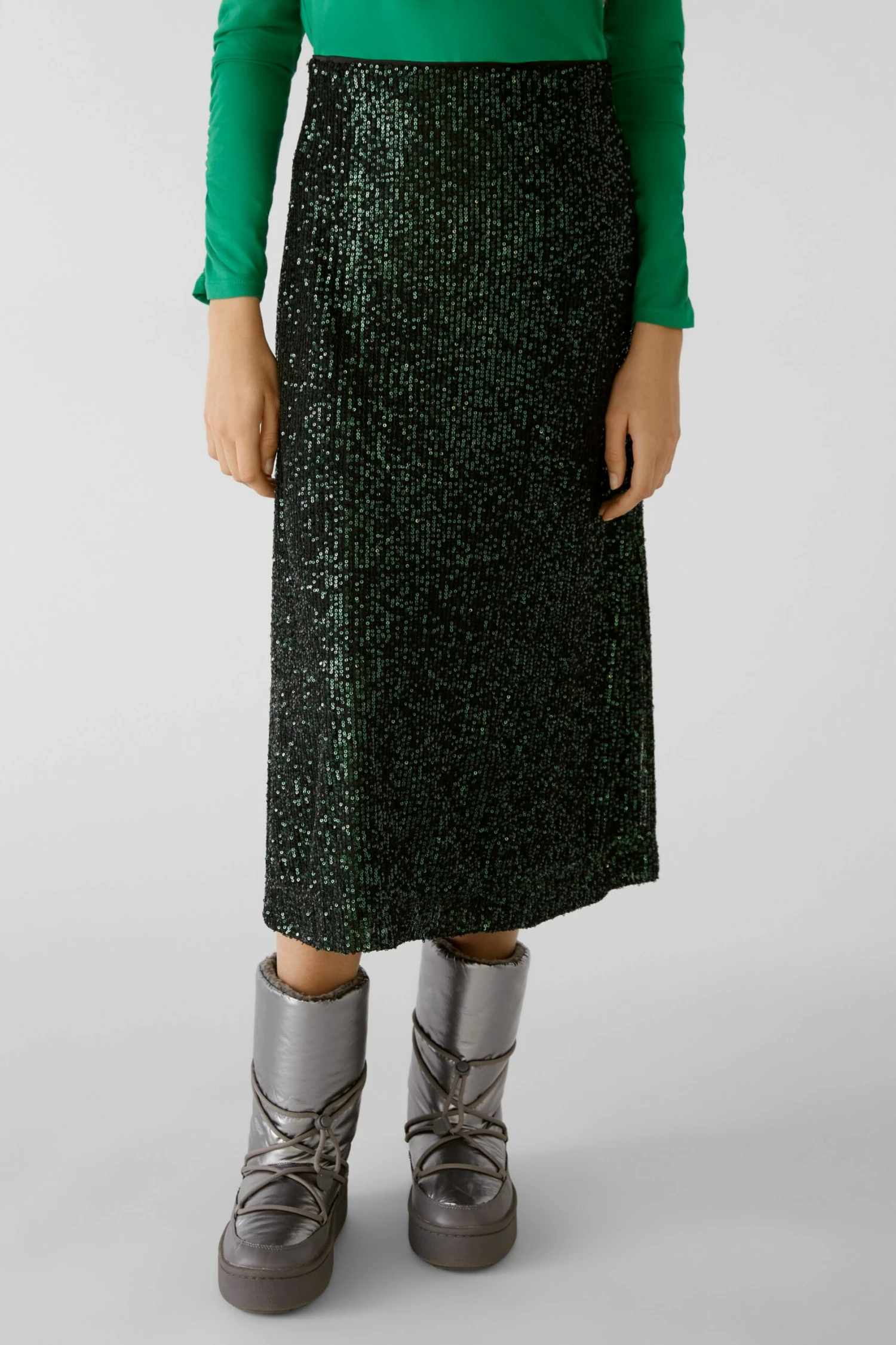 Midirock aus feiner Stretch-Paillette- neu interpretiert im Daily Glam Stil – lässig zu Strick