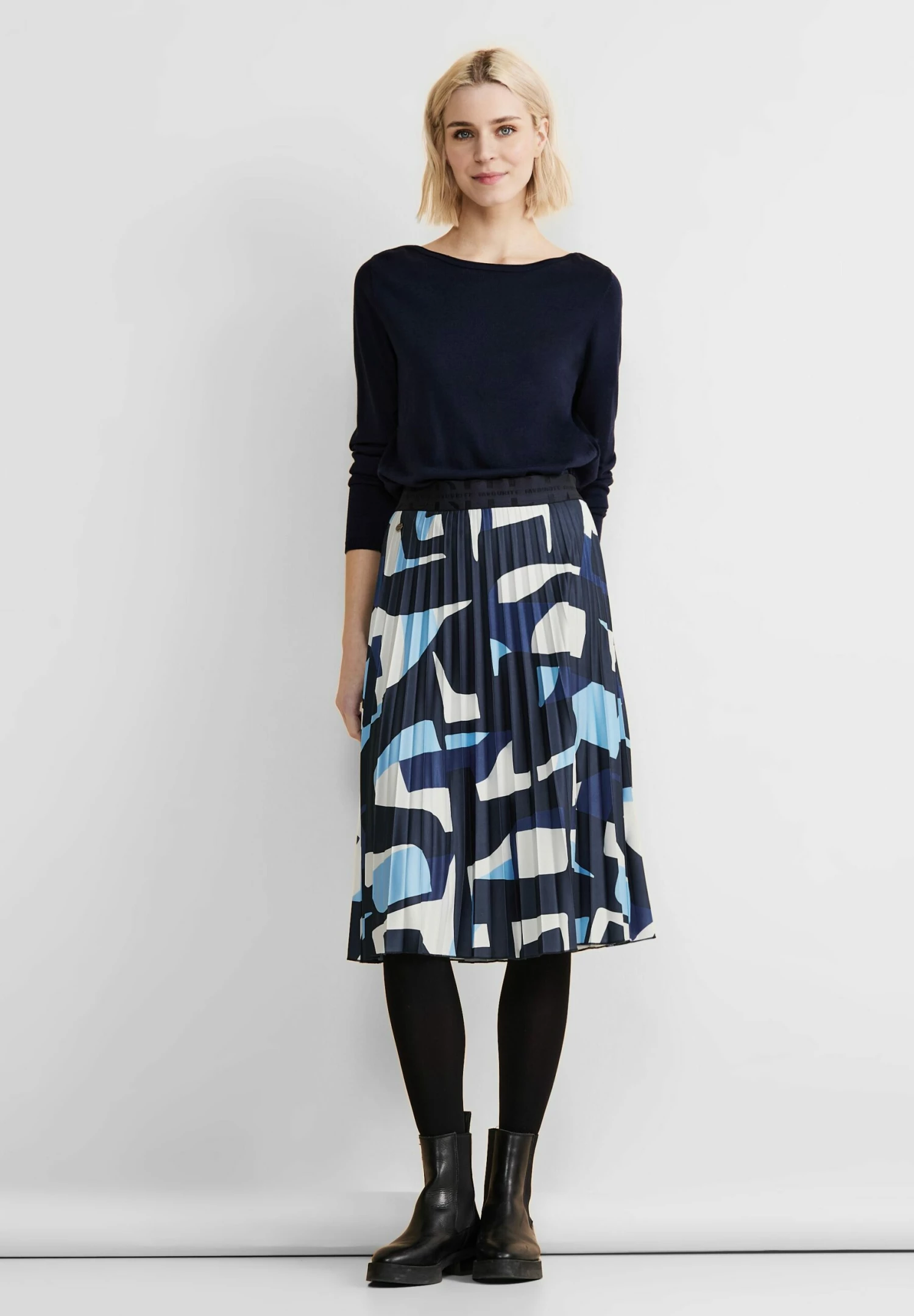 Street One Rock, moderner Print, Midi, Plissée, Gummibund
