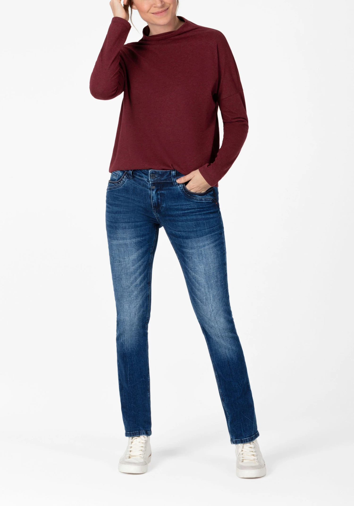 *Dunkle Waschung mit Crinkle Effekt und Sitzfalten