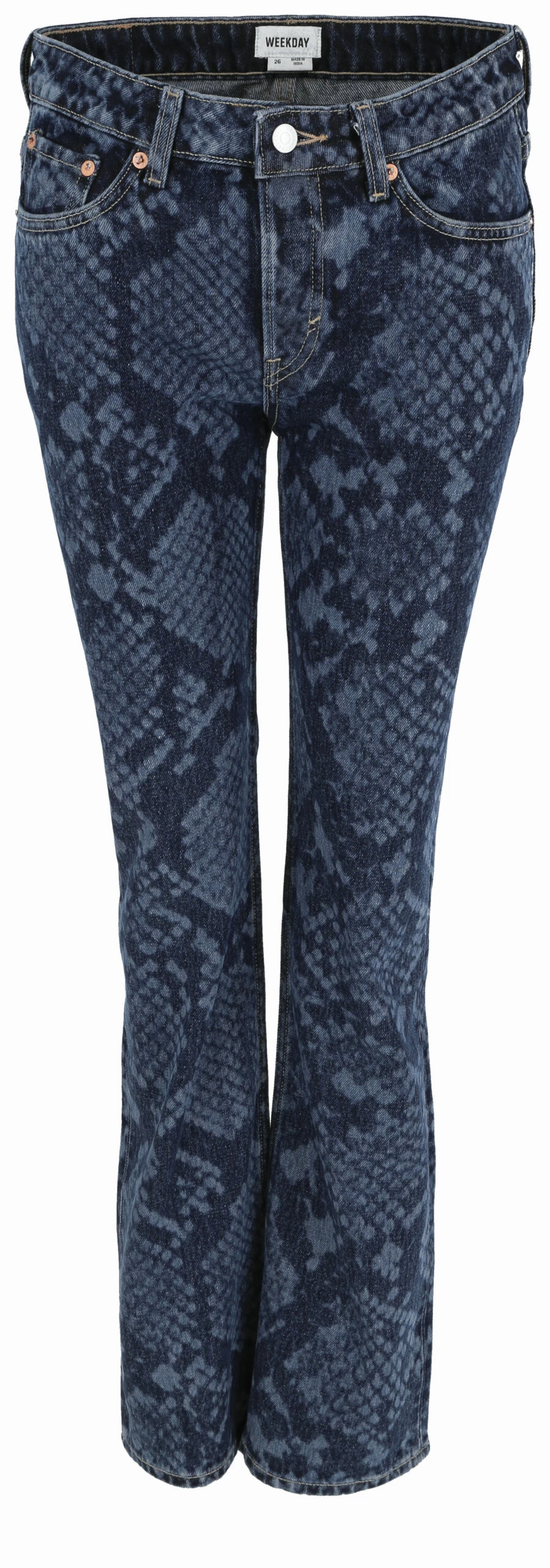 Jeans aus Bio- und Recycling-Baumwolle mit mittelhohem Bund, geradem Bein und schmaler Passform. Dieses Must-have mit großflächigem Allover-Schlangenprint hat Details im 5-Pocket-Design, einen Reißverschluss mit Knopf vorne und passt zu fast allen Schuhen.